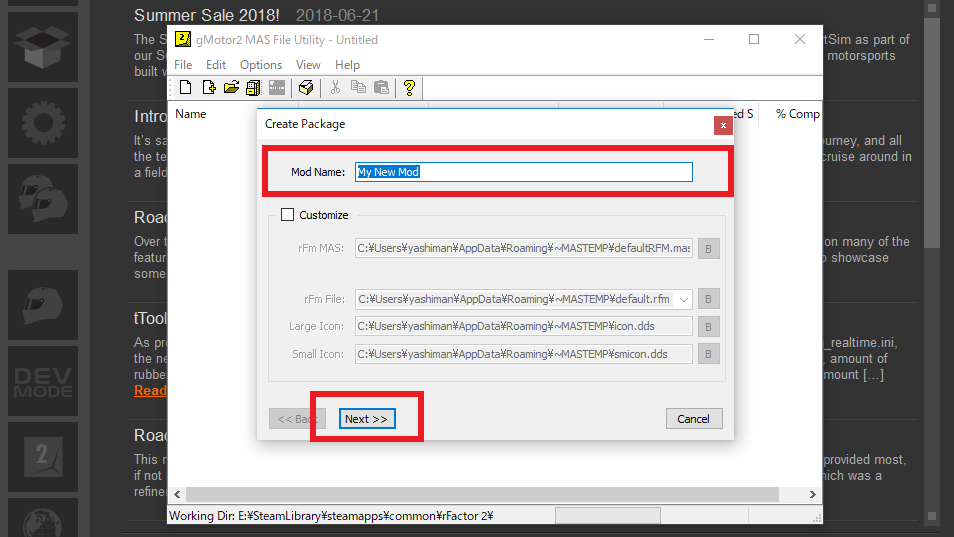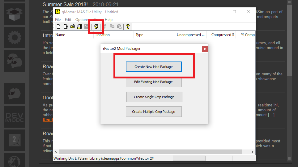 rFactor2では、鯖立て時に使用ファイルを事前登録するrfmod(vmod)ファイルが必要になります。rfmodの作り方は、Steamのガイドにも掲載されていますが、Steamのは英語なので、こちらで簡単にご説明しておきます。