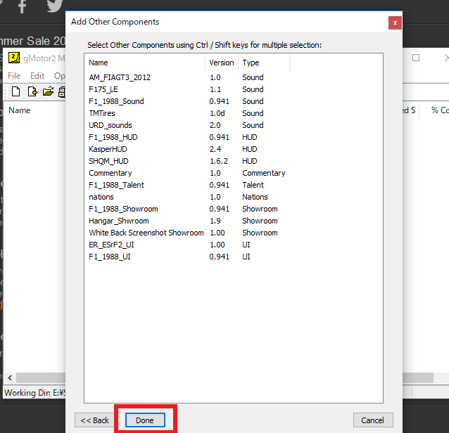 次の画面では、追加コンポーネントファイルが選択できますが、基本的には何も選択する必要がないので、そのままDoneをクリックし次に進みます。